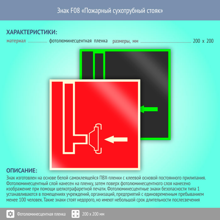 Знак F08 «Пожарный сухотрубный стояк» (фотолюминесцентная пленка, 200х200 мм) в Химках купить