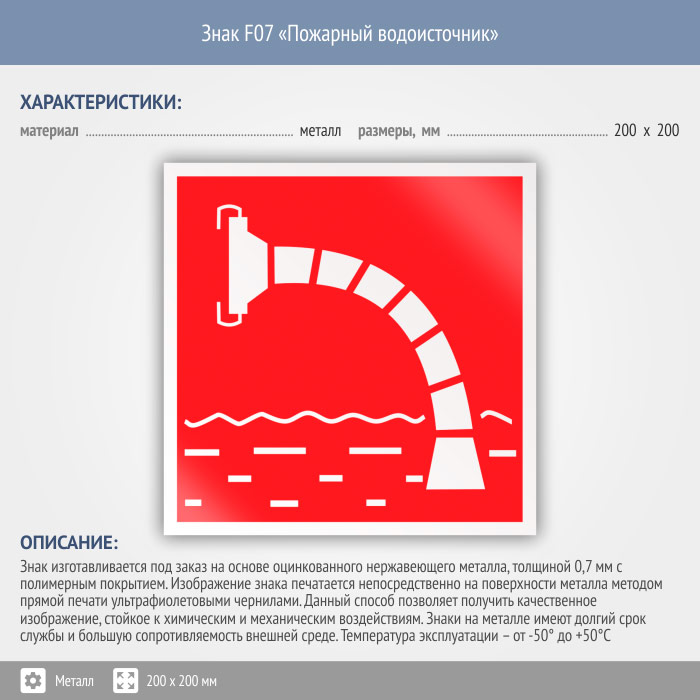 Знак F07 «Пожарный водоисточник» (металл, 200х200 мм) в Химках купить