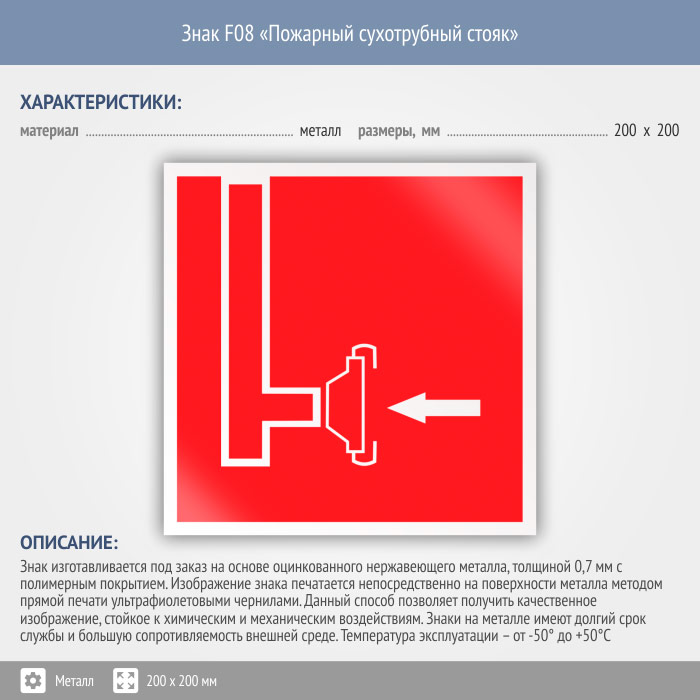 Знак F08 «Пожарный сухотрубный стояк» (металл, 200х200 мм) в Химках купить